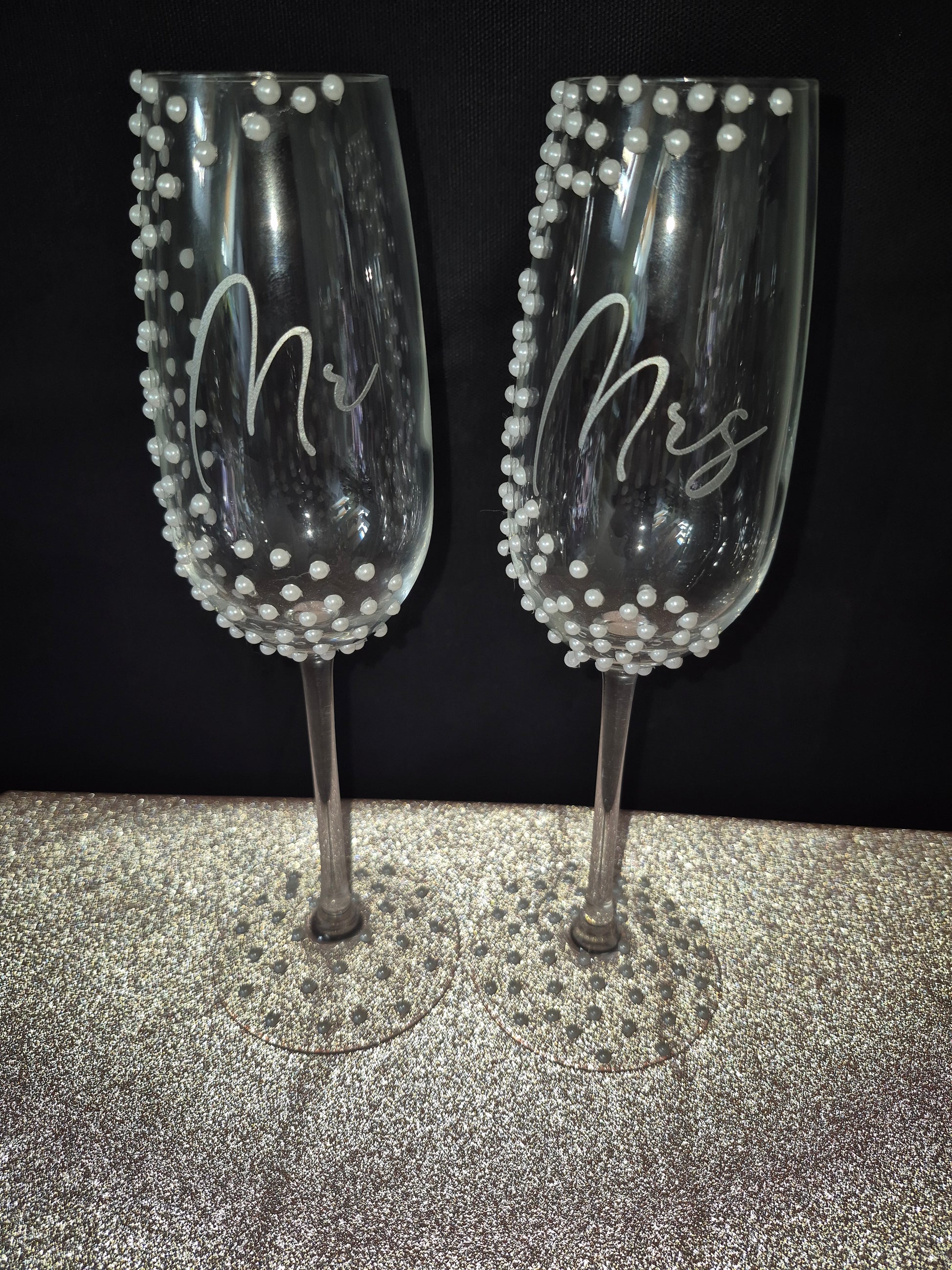 The personalisation on these flutes are vinyl stickers. These are strong and should last, but please do not wash in the dishwasher or submerge in water. This may loosen the vinyl and eventually make them peel.