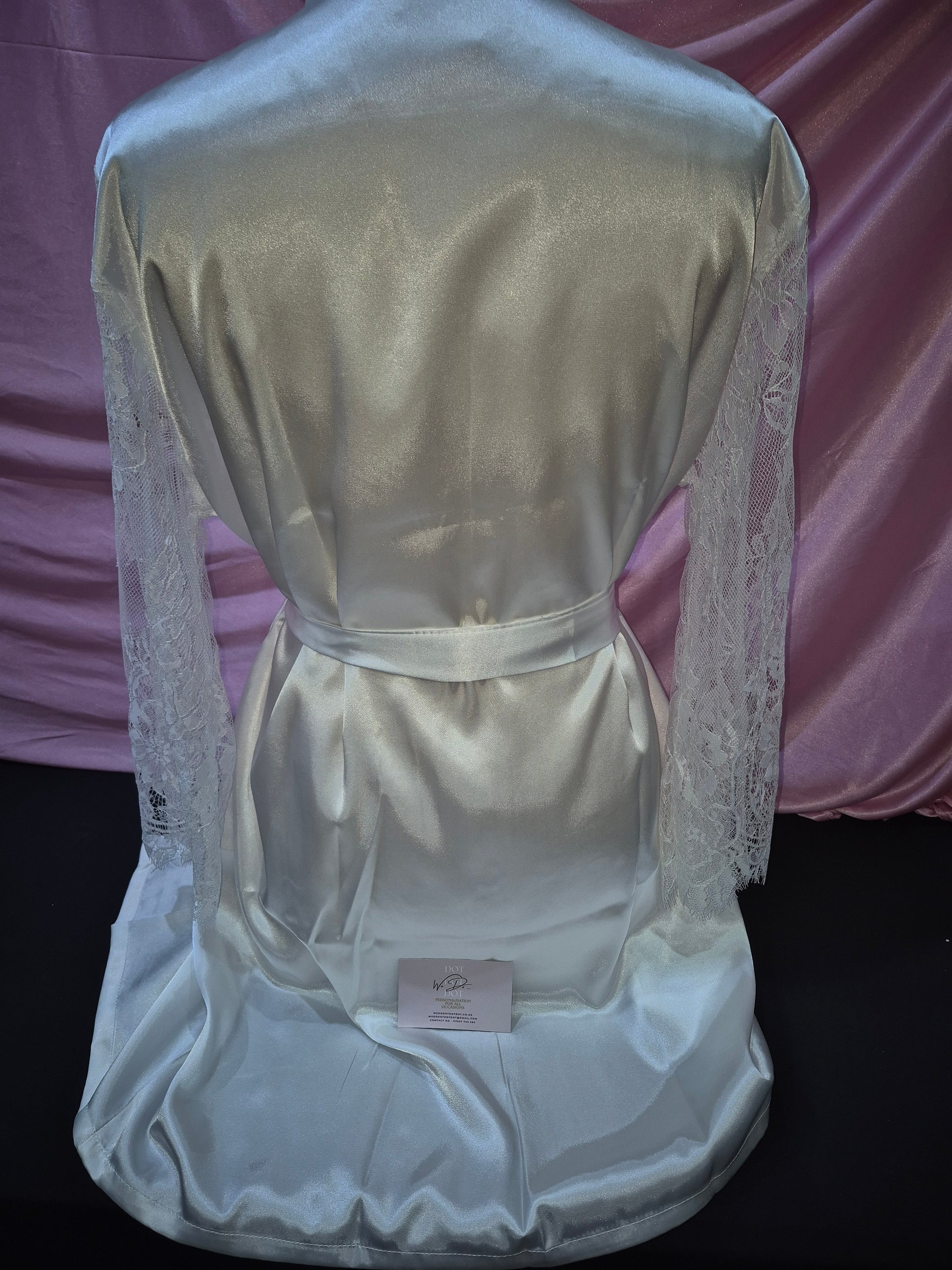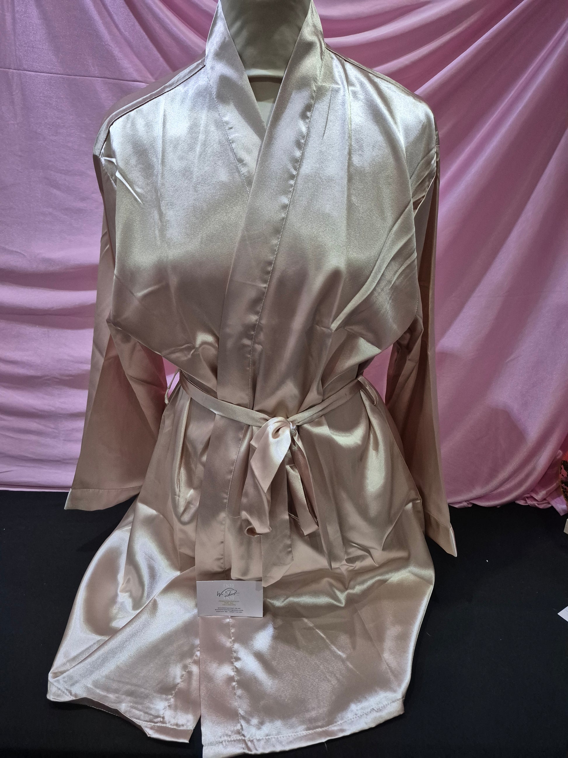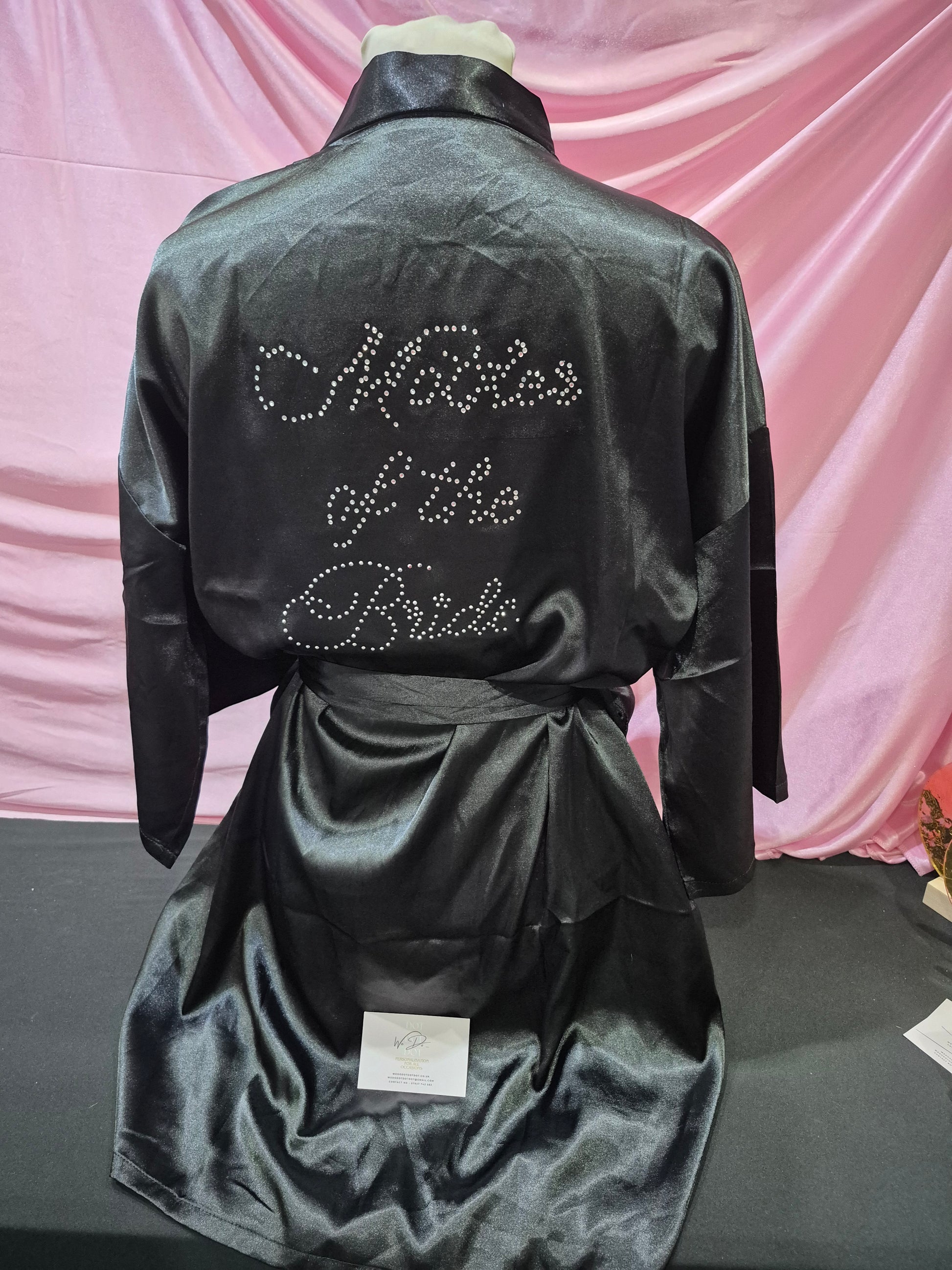 Personalised morning of the wedding satin robe with wedding role on back in diamante style