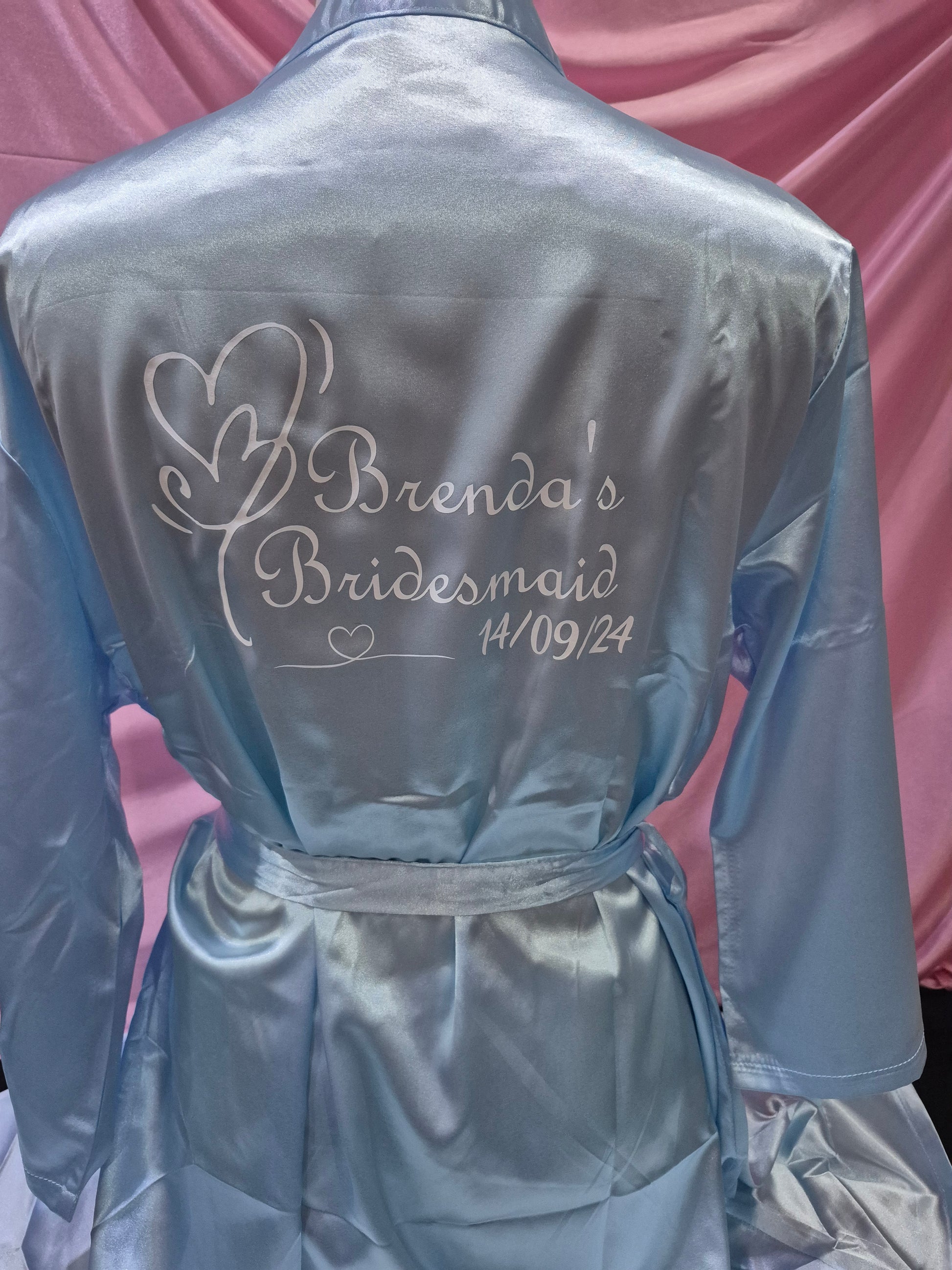 Wedding Satin Robe - Personalised name with with hearts, wedding role and wedding date